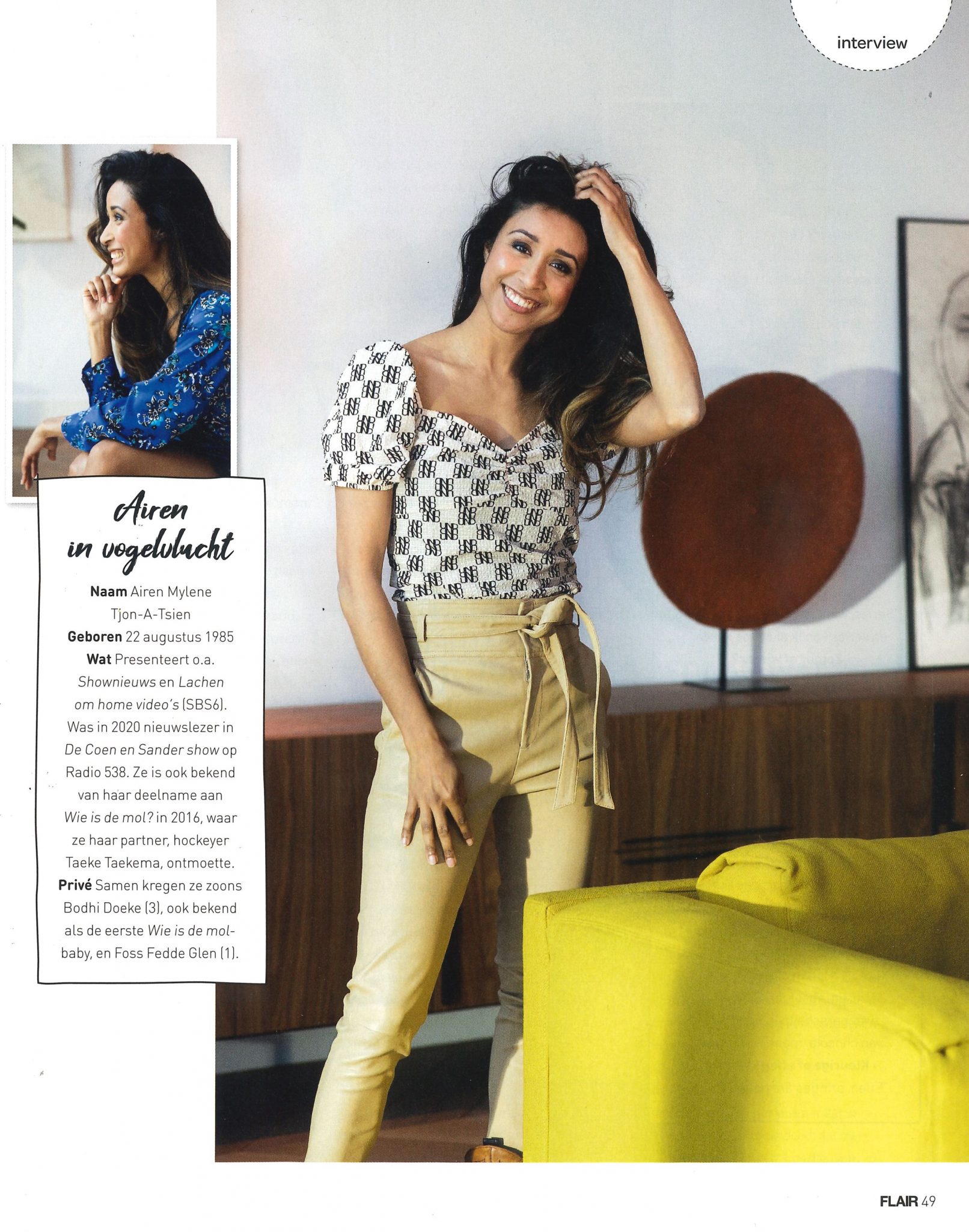 Afgelopen maand verscheen er een uitgebreid interview met presentatrice en radiohost Airen Mylene in het magazine Flair. Op de achtergrond stralen de meubelen NOOT I, NOOT II en BLAD.